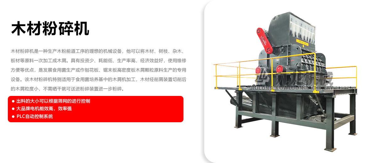 木材粉碎機是生產木(mù)粉前道工序的理想機械設備。它可以將木材、樹枝、雜木、板材等原(yuán)料一次加工成木屑,具有投資少、耗能低、生產率高、經濟效益好,使用維修方便(biàn)等優點,是發展(zhǎn)食用菌生產或作刨花板、鋸末板高密度板木屑顆(kē)粒原料生產的專用(yòng)設備。木材經削屑裝置切削後的木屑粒度小,不需曬幹就可送進粉碎裝置進行下一步的粉碎。