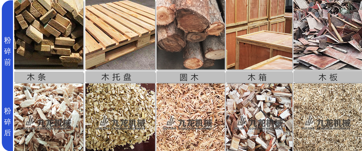 各種廢(fèi)舊木材、板材料、木托盤、下腳料、舊家具、木(mù)板、木箱等。現在粉碎木材和農作(zuò)物的人越(yuè)來(lái)越多,木材(cái)破碎(suì)後可以應用在電(diàn)廠發電,製作香行業、能源棒的生產和(hé)菌(jun1)菇生產養殖(zhí)等等不同(tóng)的領域。