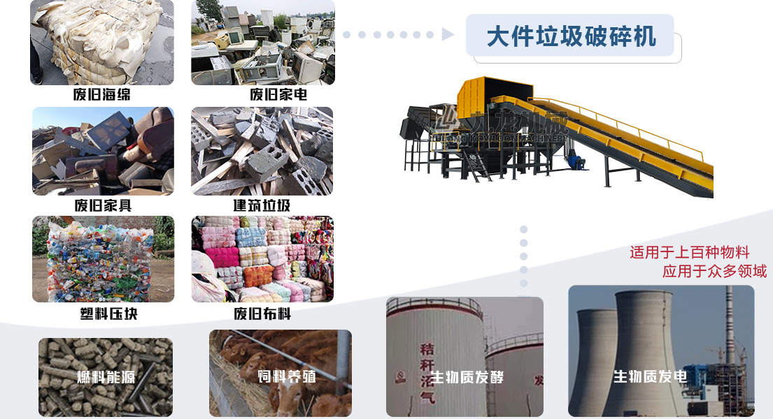 適用範圍: 廢舊床墊、沙發、廢舊家(jiā)具、冰箱、家電、裝修垃(lā)圾、園(yuán)林垃圾、包裝垃圾等(děng)大件生活廢棄物。