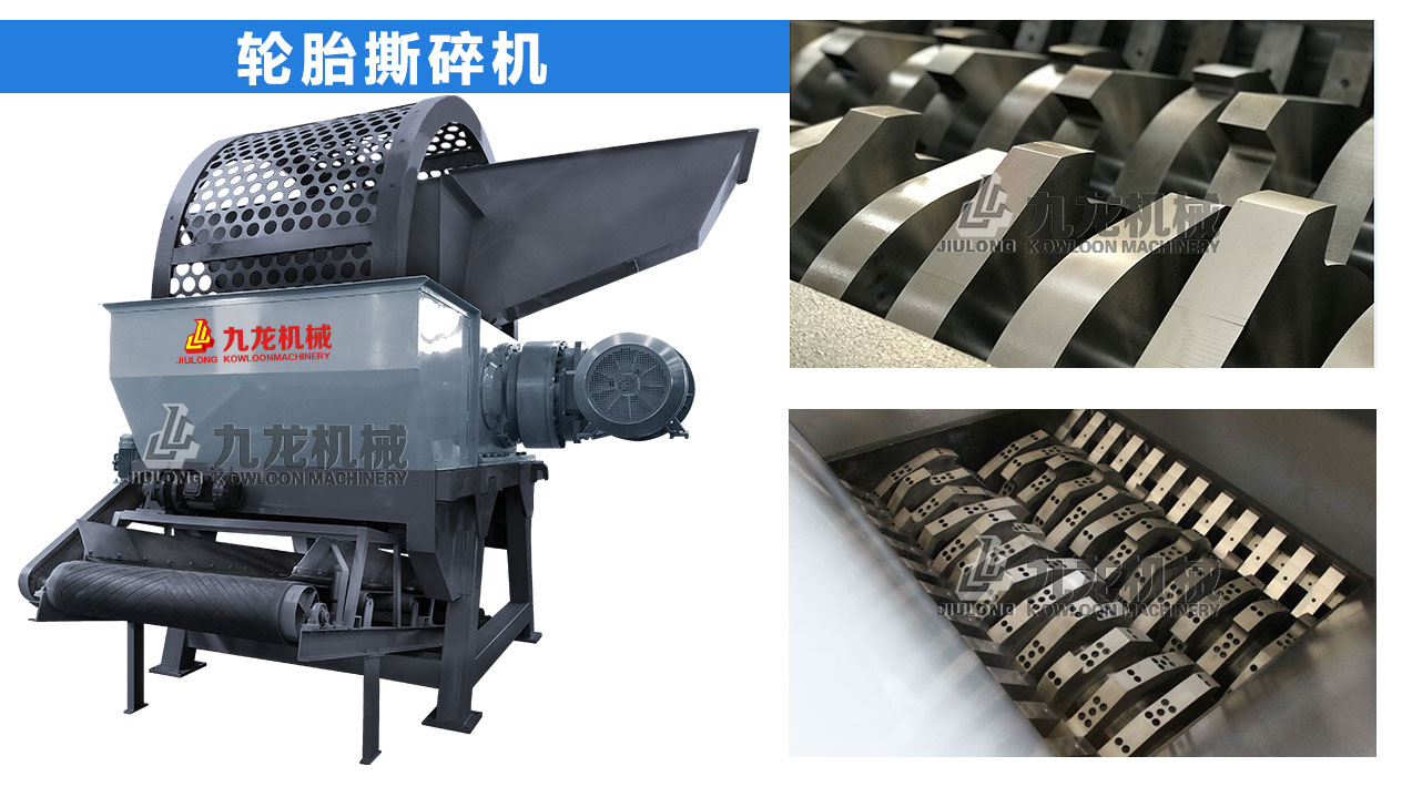3.輪(lún)胎撕碎機:將輪胎撕碎成膠片(50mm-150mm)。
